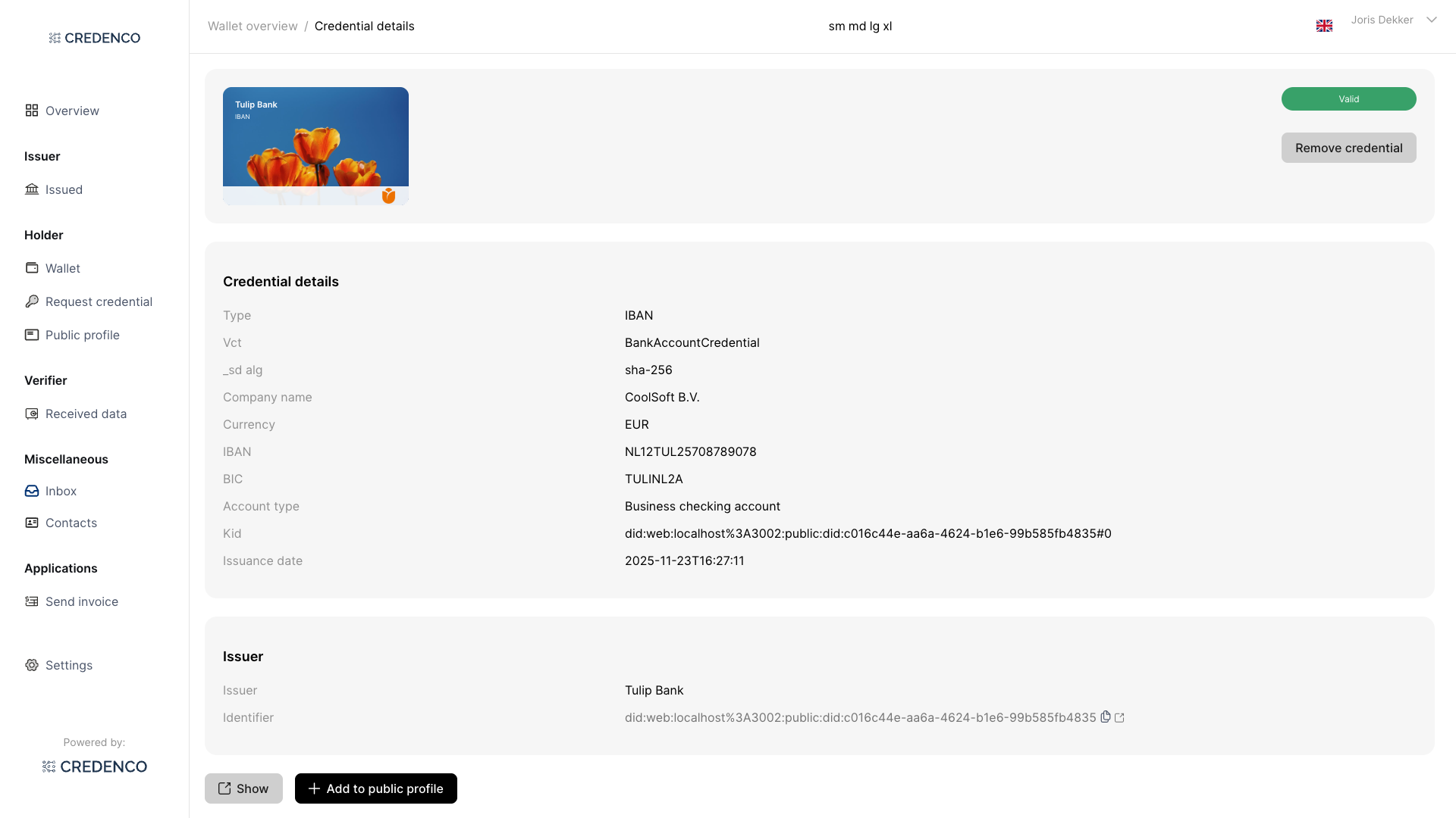 To show all credentials in your wallet, navigate to Holder | Wallet.