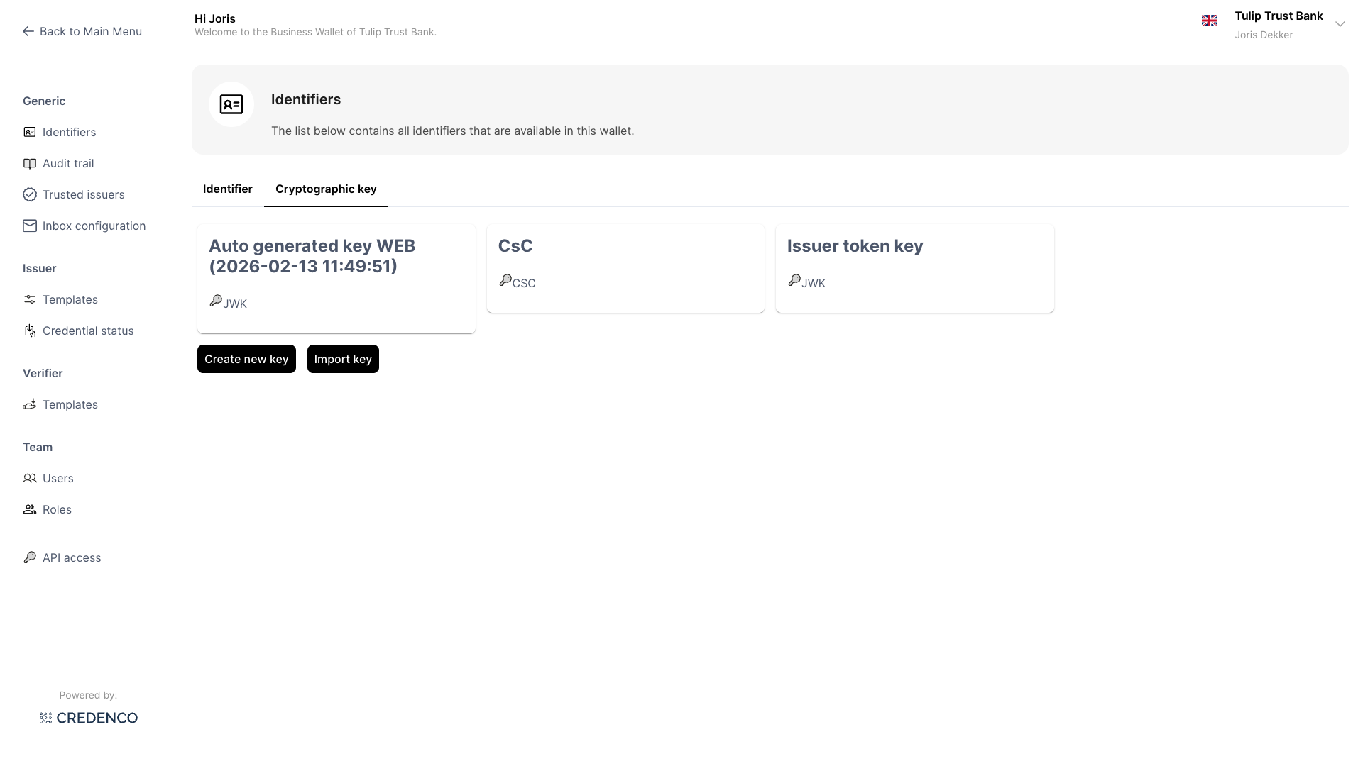 - Enter a Display name for the key. This name is shown in the wallet when key selection is needed.