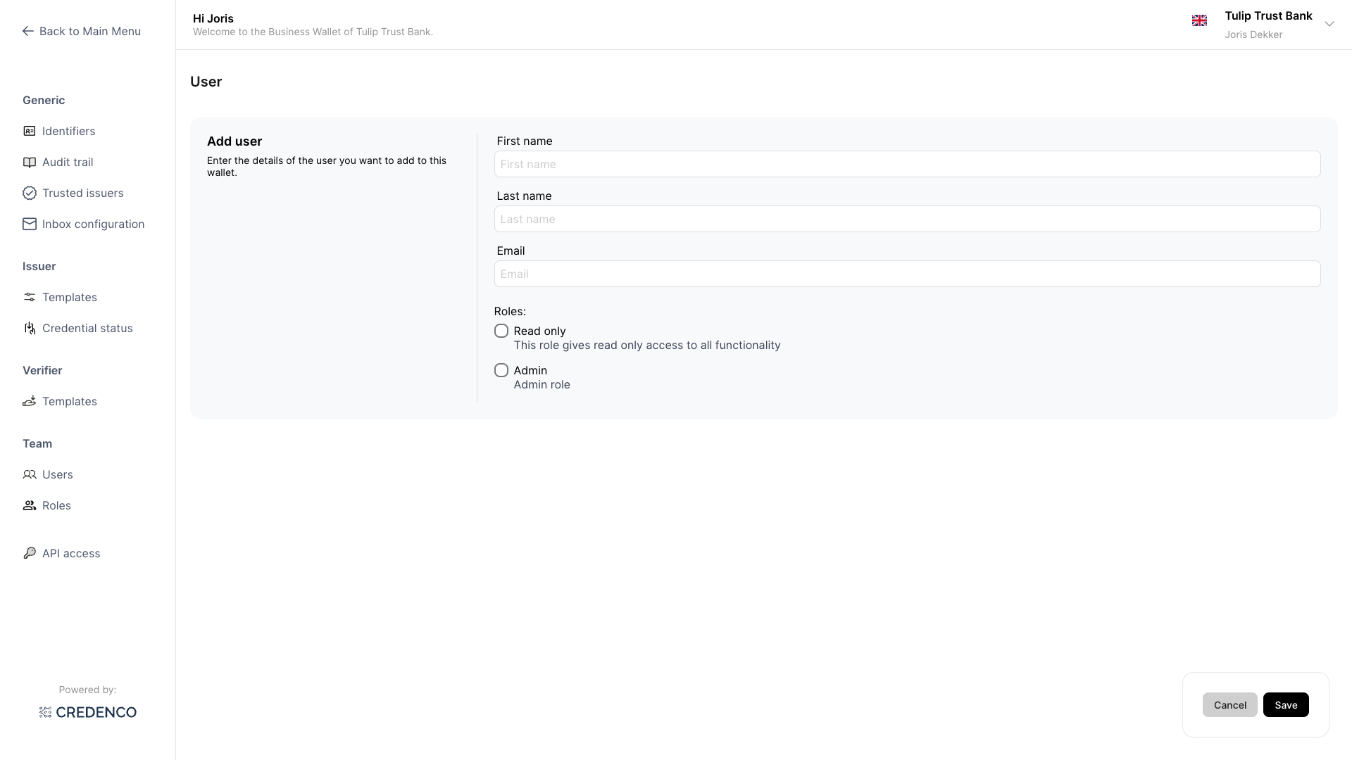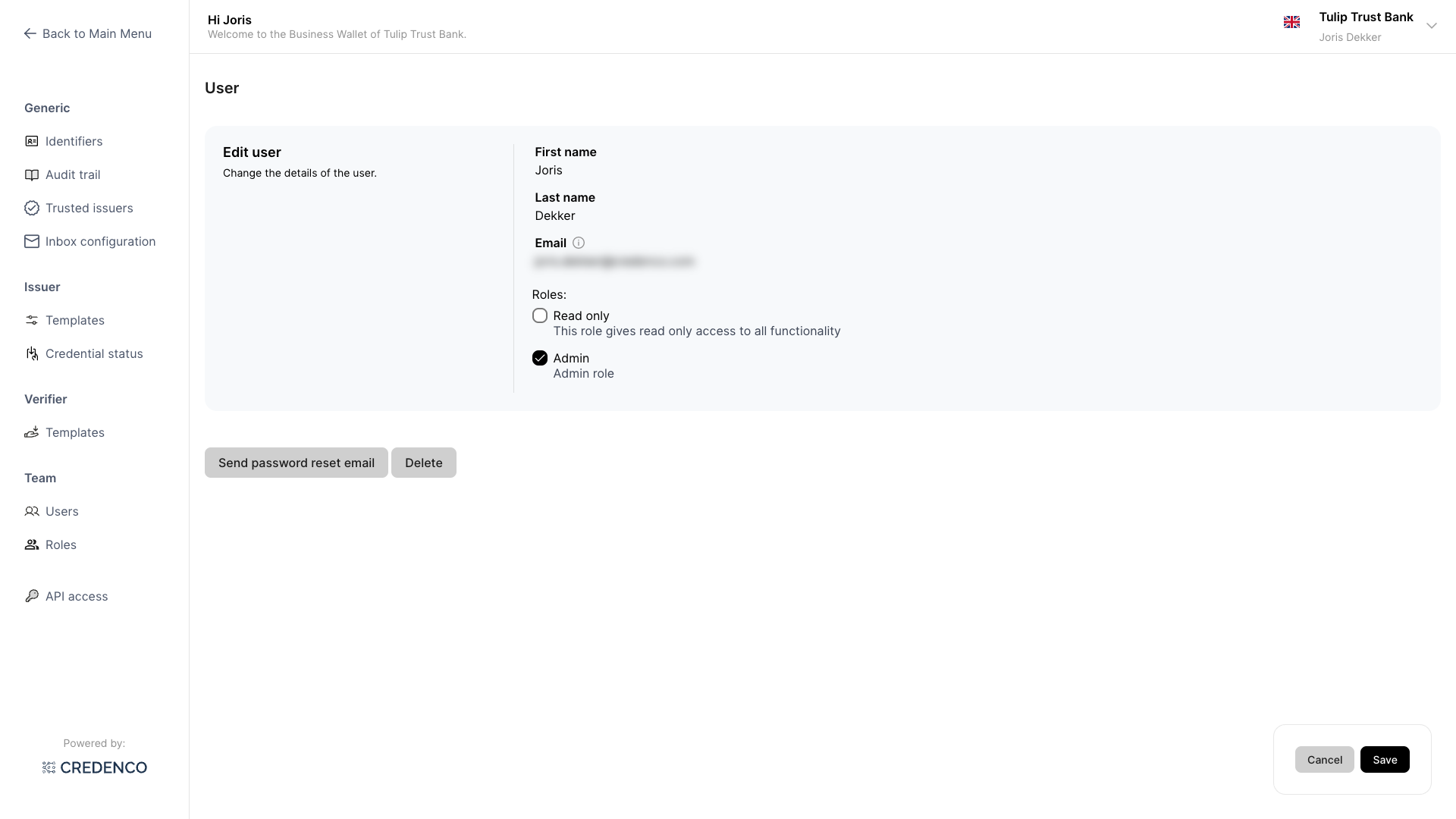 The Users screen shows all users who have access to your wallet. From here you can add new users, edit existing users, and remove users who no longer need access.